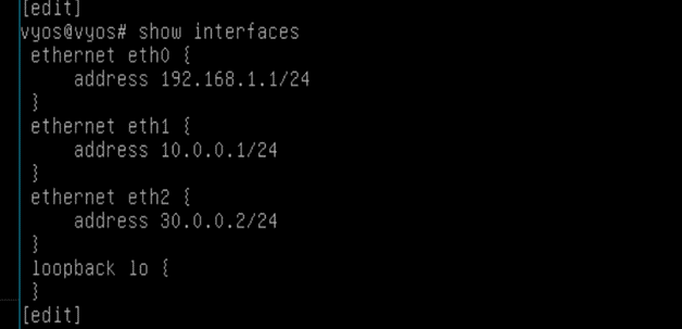 set interfaces ethernet eth1 address '10.0.0.2/24'