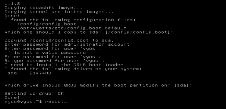 이번 과정은 VyOS user guide의 절차에 따라 설치할 수 있다. 자세한 사항은 VyOS 홈페이지에서 확인할 수 있다.