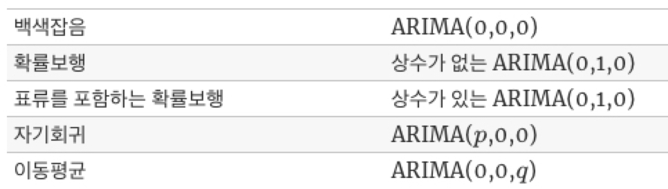 아래의 표는 ARIMA의 여러 경우를 정리한 표이다.