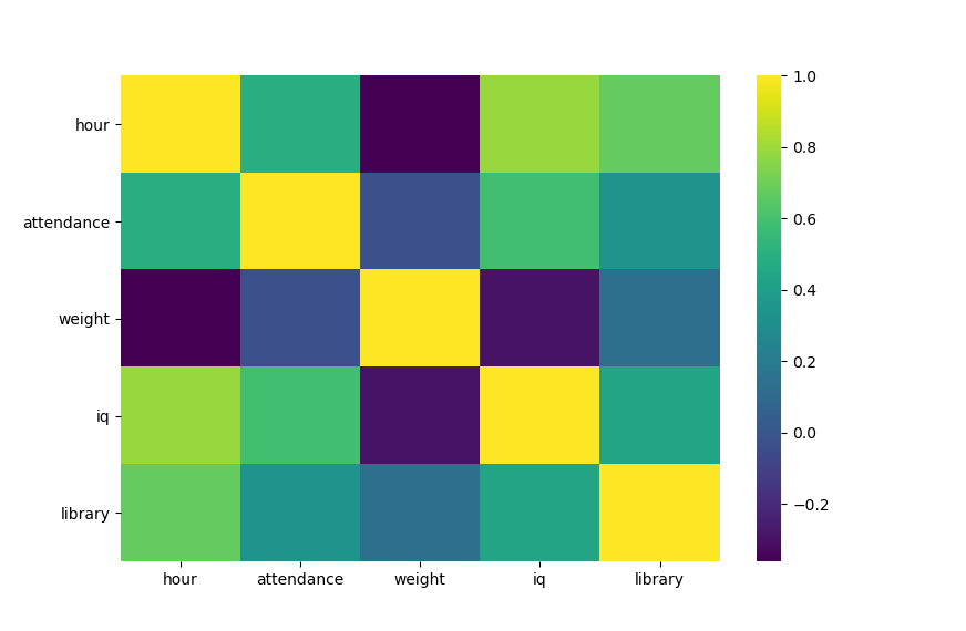 위 corr 함수의 default가 피어슨 상관계수이다. 아래는 계수를 히트맵으로 표현한 것이다.