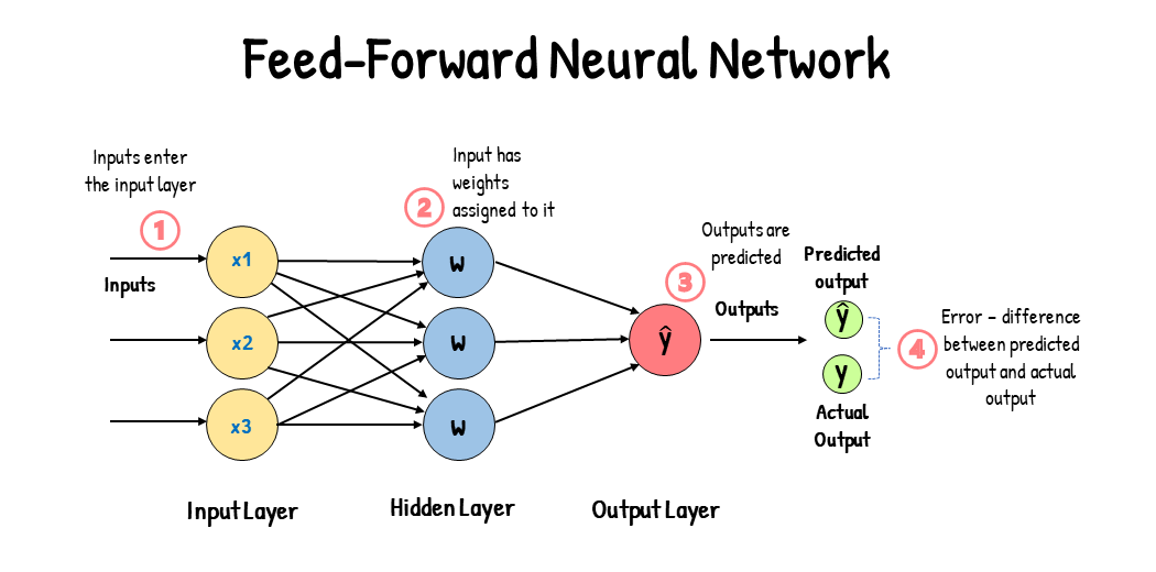 순전파(Forward Propagation)란 입력 데이터가 신경망을 통과하면서 각 층의 가중치와 편향을 통해 연산되어 최종 출력에 도달하는 과정을 의미한다. 순전파의 목표는 주어진 입력에 따라 모델이 예측 값을 계산하는 것이다.