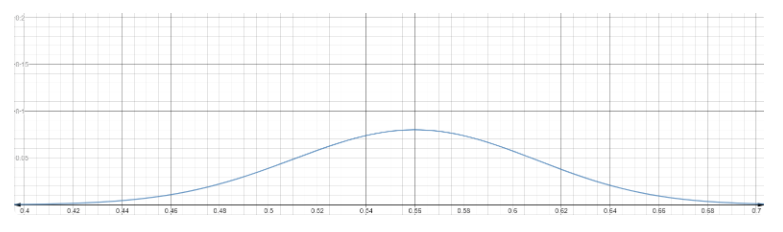 다시 돌아와 n이 10, k가 8일 때 우도 함수의 p를 0.1~0.9까지 바꿔가며 대입하면 아래와 같은 결과가 나온다.