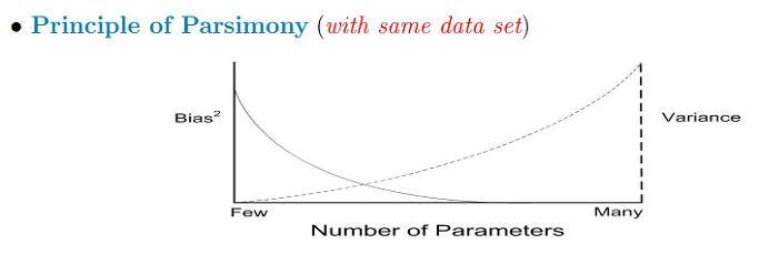변수가 많은 모델이라면(p가 큰) RSS는 작아지게 된다. 결국 AIC, BIC를 최소화한다는 뜻은 우도(likelihood)를 가장 크게 하는 동시에 변수 개수는 가장 적은 최적의 모델(parsimonious & explainable)을 의미하게 된다. Bias는 변수를 제거하면서 생기는 오류이고 Variance는 변수가 증가하면서 생기는 오류이다. 상기 AIC와 BIC 식의 좌변을 bias, 우변을 variation으로 부르는 이유이기도 하다.