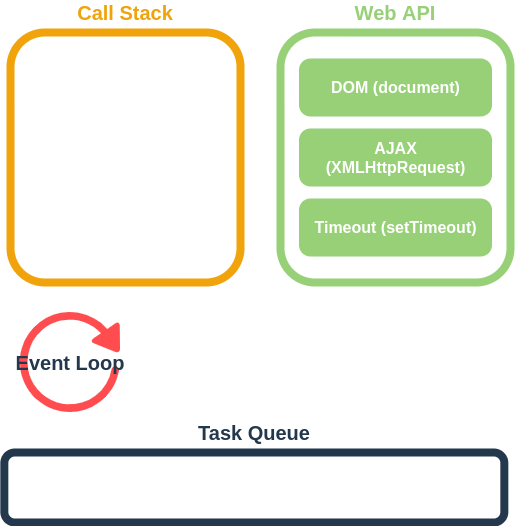 - Task Queue: Callback Queue라고도 하며 Web API에서 넘겨받은 Callback함수를 저장