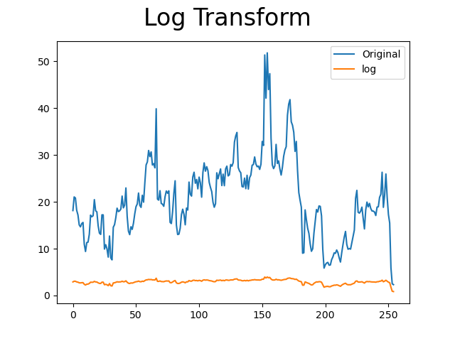 우선 로그 변환(Log Transformation)이란 변동폭이 일정하지 않은 경우 사용할 수 있는데 일반적인 수학의 x를 log(x)로 바꾸는 변환 방식이다. 로그 변환은 원본 데이터의 왜곡을 줄이거나 제거하는데 여기서 주의할 점은 원 데이터가 로그 정규 분포를 따르거나 대략 따라줘야 한다. 그렇지 않으면 로그 변환 적용이 잘 적용되지 않는다.