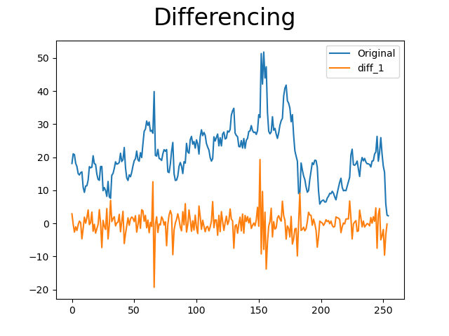 차분(Differencing)이란 임의의 두 점에서 함수 값들의 차이를 의미한다. 차분을 수행하면 평균이 균일한 시계열로 변환된다. 만약 1차 차분을 진행하였을 때 정상성을 띄는 데이터로 변환하지 못했다면 차분을 2차, 3차 반복해서 수행하면 된다. 보통 1차에서 끝난다.