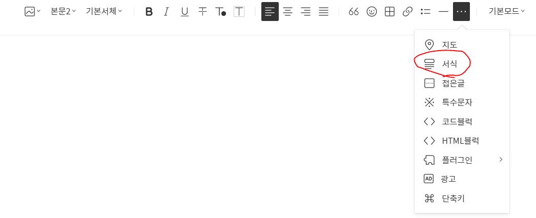 게시글 작성을 한 후 더보기에서 서식을 누르면 아래 창이 나온다.