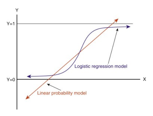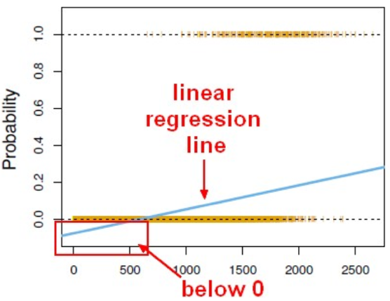 위와 같은 문제점을 해결하기 위해 종속 변수를 확률 변수로 치환하는 방법을 적용한다. 이를 통해 (0, 1)을 0≤P(Y=1│X)≤1로 나타낼 수 있다. 하지만 이 역시 p(x)= \( wx+b \)의 모델은 회귀선에 의해 음수값을 추정하거나, 경우에 따라 1을 초과하는 추정값이 발생할 수도 있다.