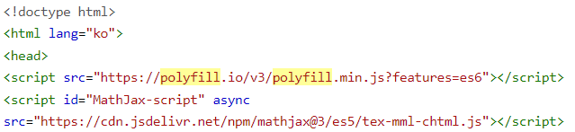 위 스크립트 코드는 html의 head 태그 안에 작성하면 된다. MathJax는 수학기호 입력을 위한 LaTex를 사용하게 해주는 JavaScript 라이브러리이다.