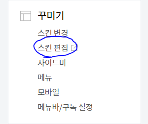 - 왼쪽 바에서 꾸미기 -> 스킨 편집