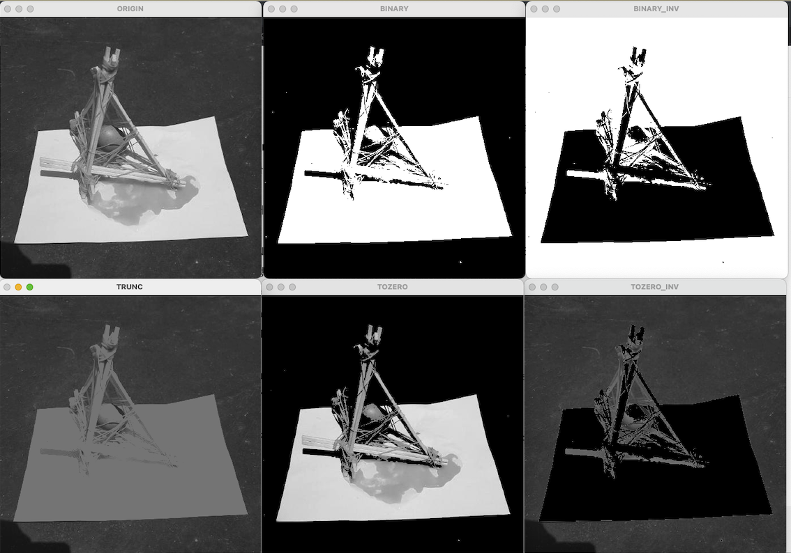- cv2.THRESH_TOZERO: 임계값보다 크면 픽셀 값 그대로 작으면 0으로 할당