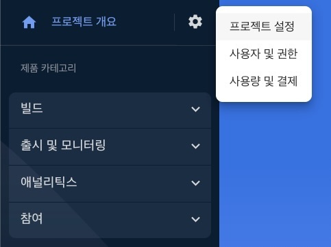 우선 자신의 프로젝트에 들어간 후 프로젝트 설정 화면으로 간다.