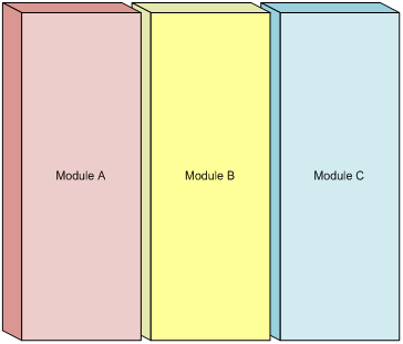 관심사에 대한 수직적 분리는 애플리케이션을 기능 모듈로 분리하는 프로세스를 뜻한다. 수직적 분리는 전체 관점에서 애플리케이션의 기능들을 분리하고, 단일 경계 내에서 interface, business, resource access 관심사를 서로 연결시킨다.