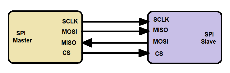 - CS(=SS): Chip Select, 보통 SS 핀 즉 Slave Select로 슬레이브를 선택할 때 사용된다. 다시 말해 마스터 장치에서 슬레이브 장치를 선택하기 위한 단자이다.