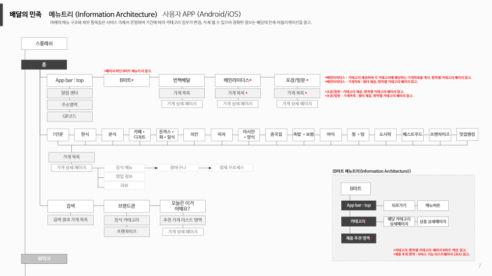 하나 더 예시를 들어 배달의 민족 IA 예시이다.