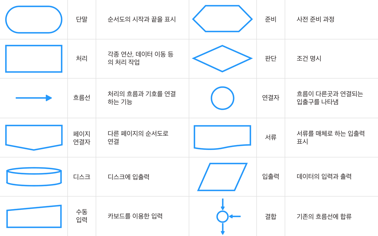 아래는 다이어그램을 그리기 위한 표이다.